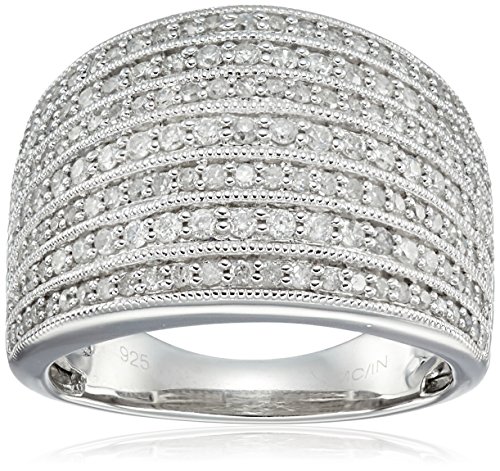 Sterling Silver Diamond Seven Row Ring (1 cttw, J-K Color, I2-I3 Clarity), Size 7