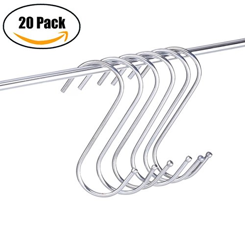 Eastsure Stainless Steel 20PCS S Shaped Hooks Metal Multipurpose Hooks for Bathroom, Bedroom, Office and Kitchen,S
