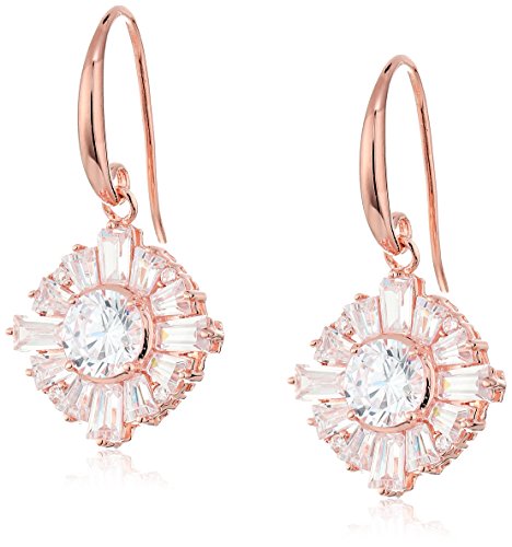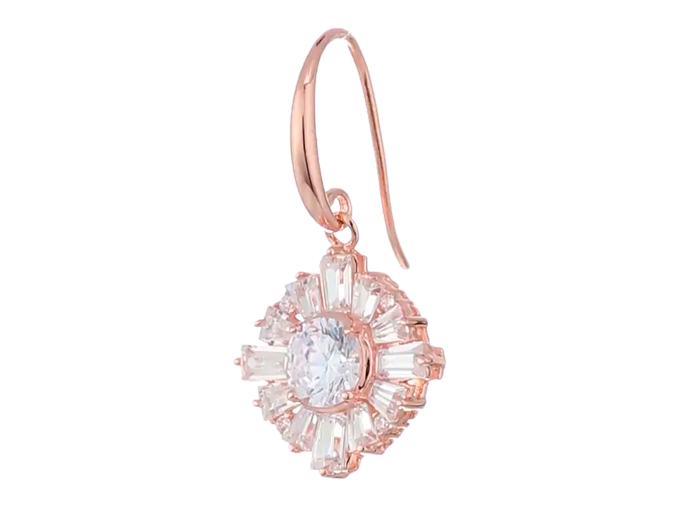 Rose Gold Plated Sterling Silver Round White Cubic Zirconia 6mm Halo Drop Wire Earrings