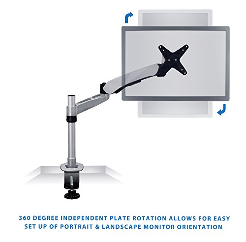 -. Title : Mount-It! Single Monitor Desk Mount Articulating Desk Stand, Gas SP.R.Ing Height Adjustable, Supports 15”-30” Screens, C-Clamp, Silver (MI-35116)