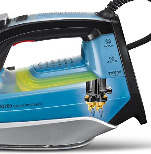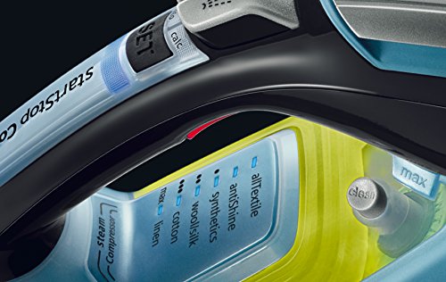 -. Feature : perfectSelect: Einfach und schnell zum gewünschten Bügelprogramm. / steamCompressor: Permanent tiefe Dampfdurchdringung des Gewebes für perfekt glatte Wäsche - in Bestzeit! / startStop Control: Automatisches Abschalten bei jedem Bügelstopp. Heizt schnell auf, sobald Sie wieder mit dem Bügeln starten. / Lieferumfang: Befüllflasche, Entkalkungsflüssigkeit
