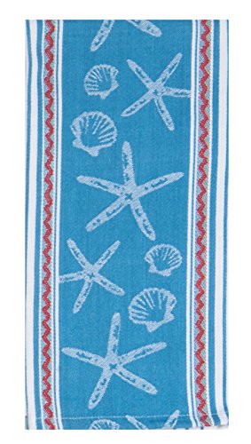 - Tea towel features vibrant & intricate jacquard weave of starfish and seashells