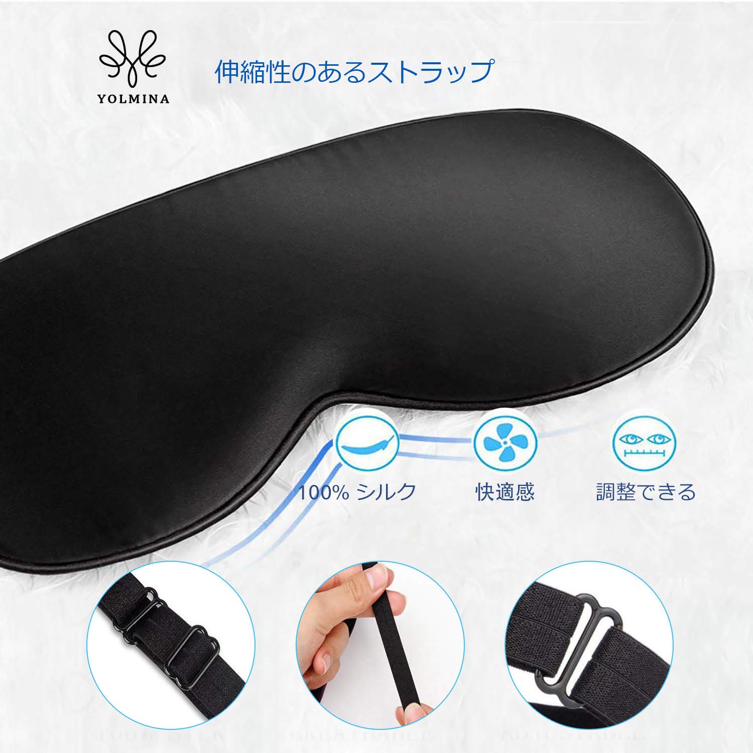 圧迫感なし:シルクのように繊細な布地で、肌に優しいタッチで、軽くて柔らかい感触をもって、プレッシャーを緩んで睡眠を進めます。通気性に富んで蒸し暑くなく、あなたの目の周りをやさしくマッサージするように落ち着かせ、目の周りを束縛しなくて、目と目の周りを保護可能です。
