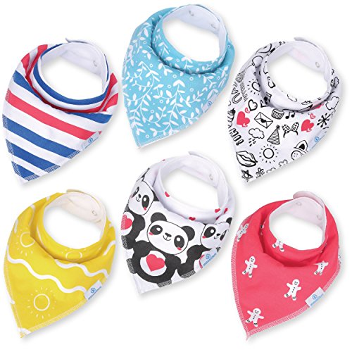 Baby Bandana Bibs for Drooling and Teething - Extra Absorbent Organic Cotton Bib for Boys & Girls by MaxamStars - 6 pack