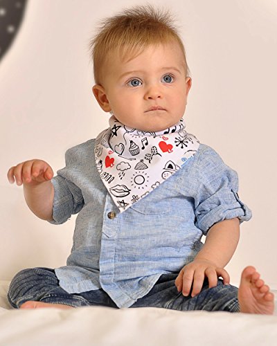 EASY SNAP IT ON AND OFF: These bibs are so easy to snap it on and off by parents or grandparents but difficult to unfasten by babies. Each bandana drool bib will fit your growing baby because has two machine-wash safe adjustable snaps. Recommended for baby ages between 3 and 36 months.