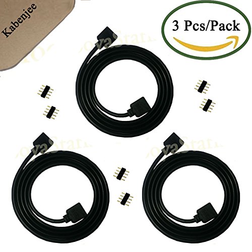 Kabenjee 3X 4pin RGB LED Light Strips Solderless Extension Connector Cable,5050 RGB Strip 1m/3.3ft Copper Wire with Black PVC Insulation,LED Tape Plug in Quick Connector with 4Pin Plugs(3pcs/Pack)