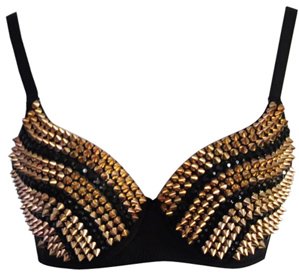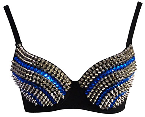 This sassy black bra features with Rhinestone and metal studs and throughout the cups.Please use our own Size Chart guide located on the left of the product image
