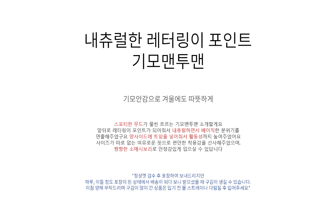 .같은 사이즈라도 체형에 따라 핏감이 조금씩 다를 수 있습니다.