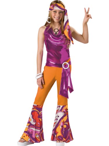 -. Binding : Toy -. Brand : InCharacter -. Color : multi -. Department : girls -. Feature : Jumpsuit with flattering, draped liquid lame top and full cut legs / waist sash with buckle, and headwrap / Jewelry not included -. ProductGroup : Toy -. ProductTypeName : TOYS_AND_GAMES -. Title : Girl's 70's Costume : Child Girl's Disco Halloween Costume