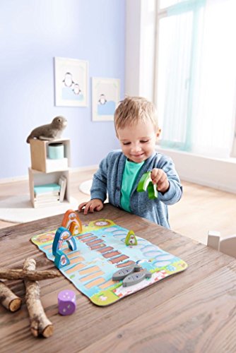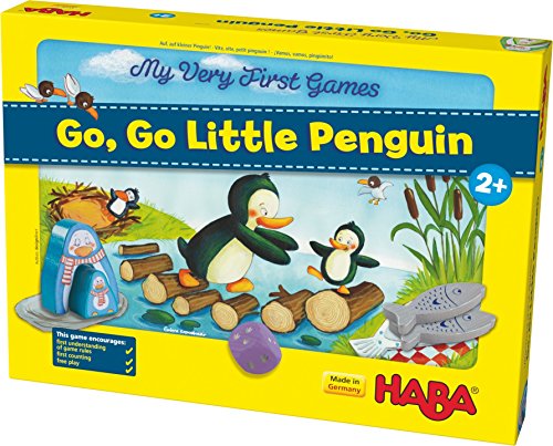 Studio : Haba Publisher : Haba Binding : Toy Product Description Go, go, little penguin! The penguin mommies and their babies live on an island. But the tasty fish is on the mainland, and the penguin babies don't know how to swim yet. Fortunately, there are plenty of stones, logs and planks jutting out of the water so the penguin babies can hop with their mommies from one to the next. Which penguin twosome will be the first to reach the plate on the mainland and gobble up the two tasty fish? A first competitive game for 2 to 3 penguin fans 2 years and older. Game duration: approx. 5-10 minutes. Game contents: 3 penguin mommies, 3 penguin babies, 1 game board, 2 fish, 1 die, game instructions. 0