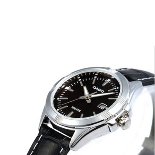 -. Title : Casio Men's MTP1308L-1AV Black Leather Quartz Watch with Black Dial