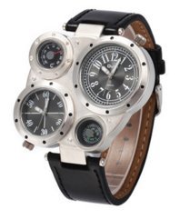 -. Title : oulm 腕時計 電子クォーツ時計 コンパス 温度計付 文字盤 ブラック