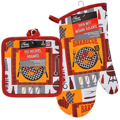 BBQ 5 PC Kitchen Linen Set Two Towel, Two Pot Holders, & One Oven Mitt (Barbecue)