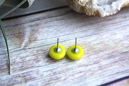 -. Title : Chartreuse Earrings - Neon Glass Studs - Handmade Earrings