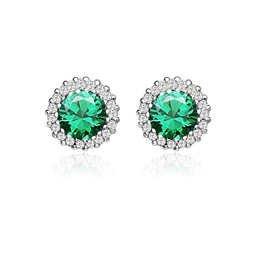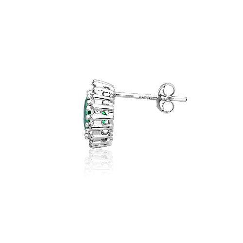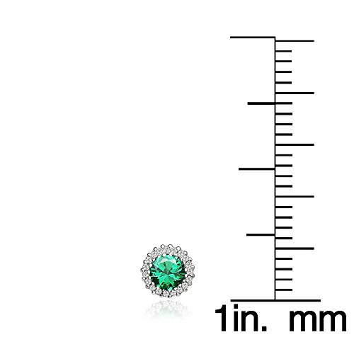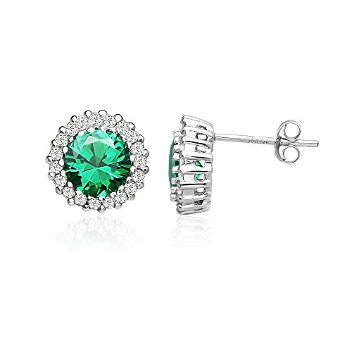 Sterling Silver Simulated Emerald and Cubic Zirconia Round Halo Stud Earrings