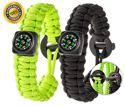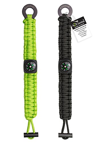 - GET NOW YOUR 2 pcs set - 4-IN-1 SURVIVAL TOOL: High Quality Compass* (attention: some variations are with no compass), 7 Strand Parachute Cord Rope, Flint Fire Starter & Fire Scrapper, that can be used also as Emergency Knife. | LIGTHWEIGHT & COMFORTABLE DESIGN: Make the A2S Dare2 Paracord Bracelet an indispensable survival accessory for any outdoor activity, camping, fishing, hiking or hunting trip. Ideal for unexpected survival situations