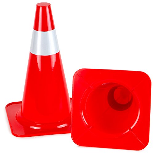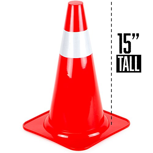15" High Hat Cones in Fluorescent Orange with Reflective Sleeve for Indoor/Outdoor Traffic Work Area Safety Marker & Agility Sport Training by Bolthead Industrial (Single)
