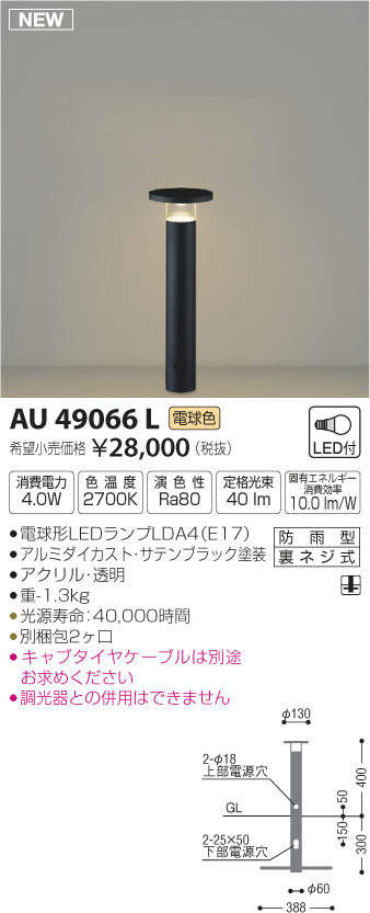 ●地上高-400 幅-φ130 埋込深-300mm 重-1.3kg