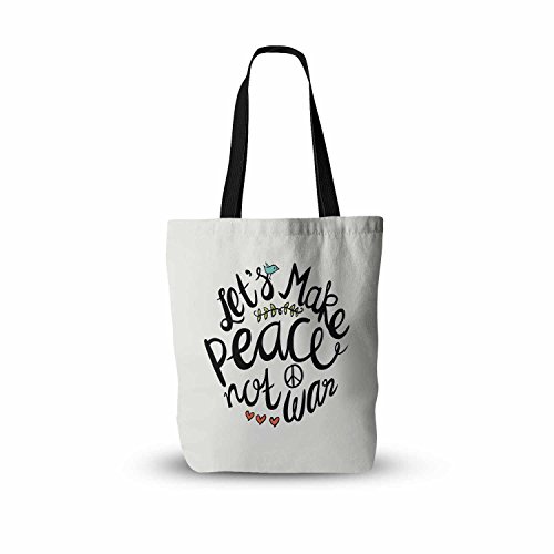 KESS InHouse "Pom Graphic Design Peace Not War Teal Black Typography Illustration Everything" Tote Bag, 18" x 18", Multicolor