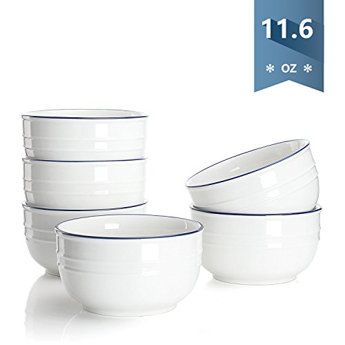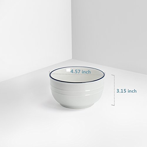 VERY STYLISH LOOKING Simple and elegant, little bowls give you a stylish look. They feature a classic silhouette with blue trim as well as white bands. Moreover, they are finished with a transparent glaze, delivering a nice feeling to touch.