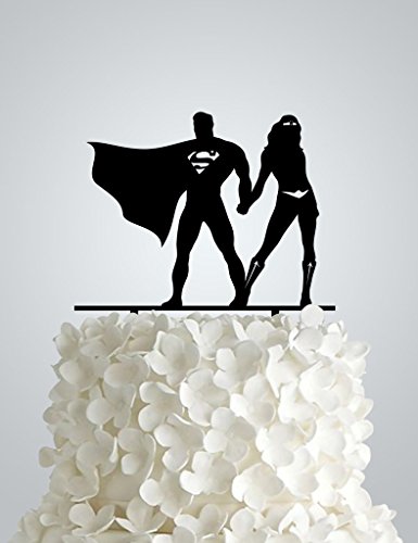 Acrylic Wedding cake Topper inspired by Superman and Wonder woman