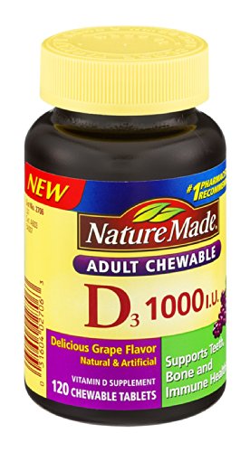 Nature Made® Adult Chewable Delicious Grape Flavor D3 1000IU Vitamin D Supplement. New. #1 pharmacist recommended‡. Natural & artificial. Supports teeth, bone and immune health†. 120 chewable tablets.Feature