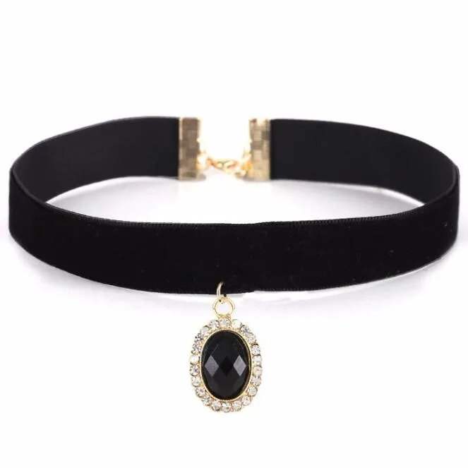 Black Acrylic Gem Pendant Necklace Velvet Chain Inlaid Crystal Choker Necklace For Women Fashion Party Jewelry Factory Wholesale