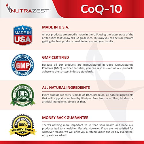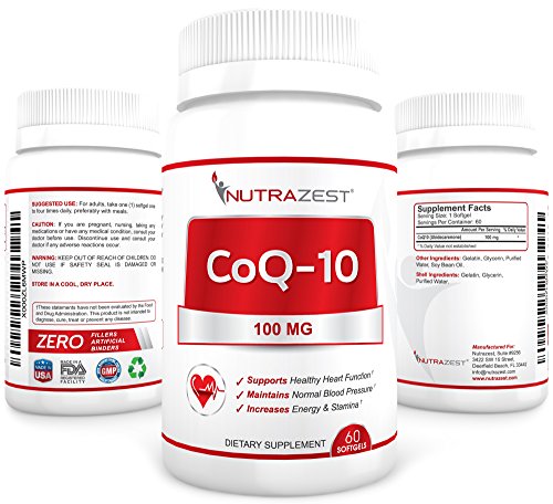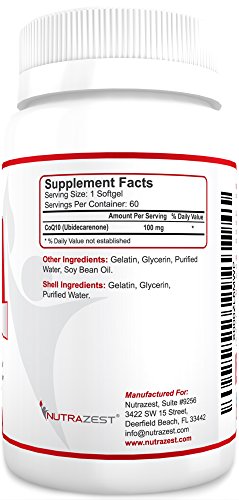 Nutrazest CoQ10 100mg - 100% Pure CoEnzyme Q-10 Benefits Cardiovascular Health, Energy and Stamina, Muscle Recovery, Brain Health & Supports Healthy...