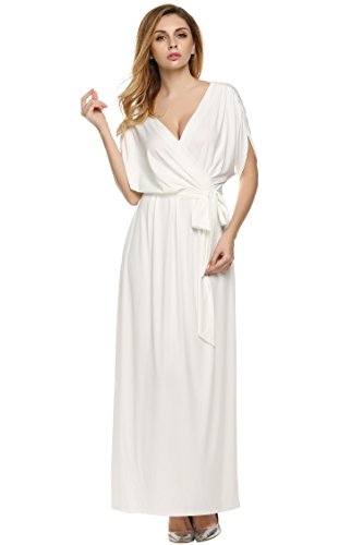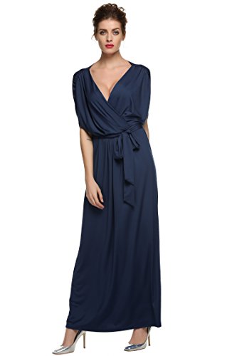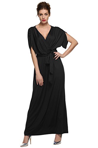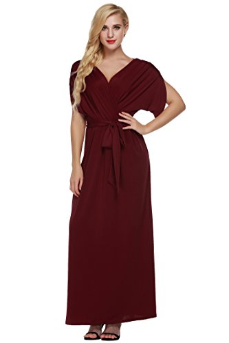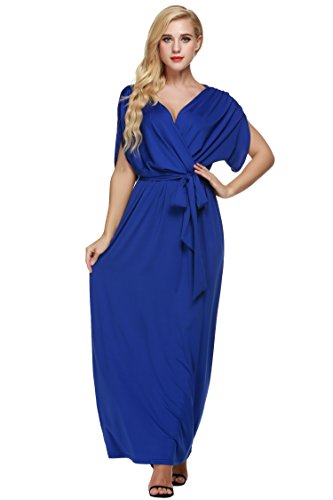 This ruffle short sleeve maxi dress features batwing or dolman sleeves, a crossover chest and belt tie design ensures a wonderful fit for all body shapes. Versatile, comfortable to wear,can be worn to a number of occasions ranging from a formal event to a cocktail party. A great choice as evening dress, wedding party dresses, bridesmaid dress, formal dress or maternity dress.