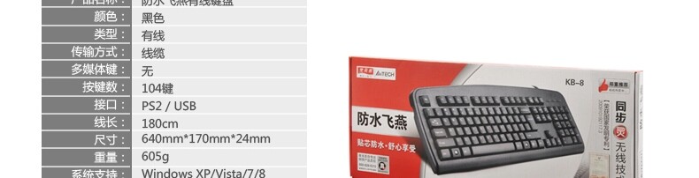 双飞燕KB-8有线游戏键盘USB接口防水笔记本台式机电脑网吧办公PS2