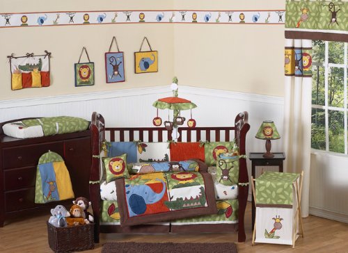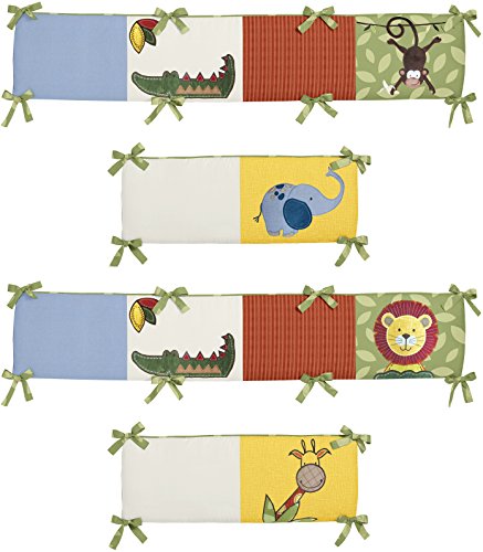 Studio : Sweet Jojo Designs Publisher : Sweet Jojo Designs Binding : Baby Product Product Description Complete your nursery with the Jungle Time Crib Bumper by Sweet Jojo Designs. This bumper is made exclusively to coordinate with the Sweet Jojo Designs crib bedding collection. Fits all standard cribs and has top and bottom ties for a secure fit. Dimensions: (2) Short Sides: 27 in. x 10 in. each and (2) Long Sides: 52 in. x 10 in. each. 0