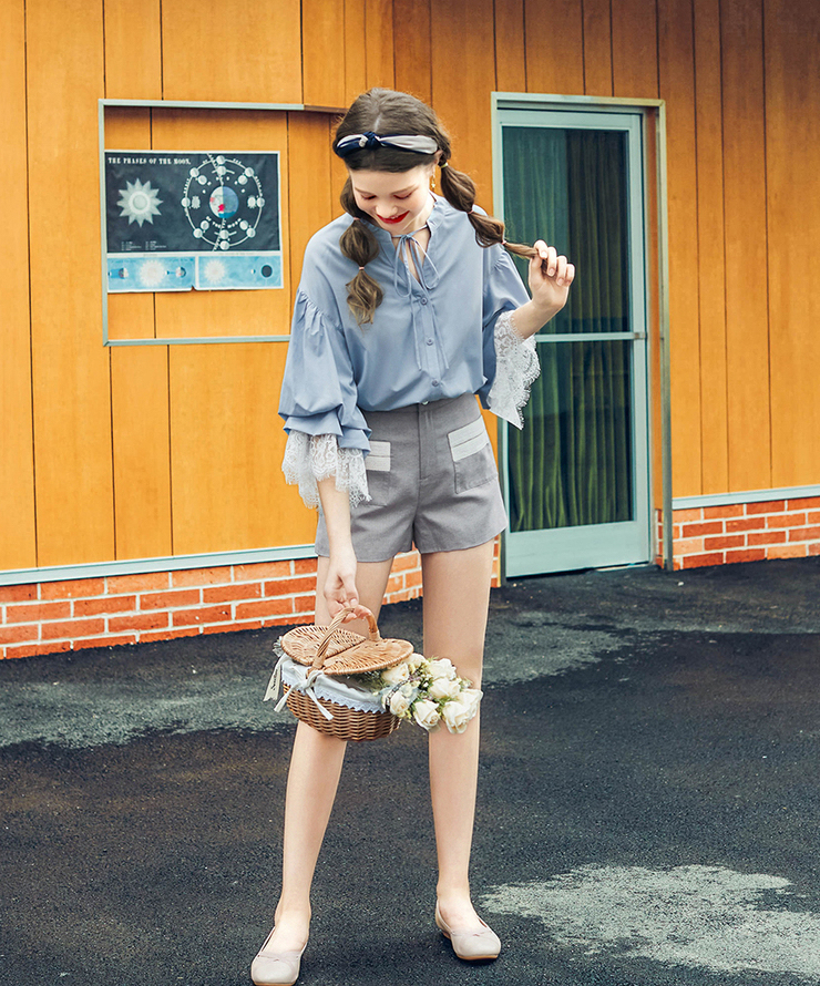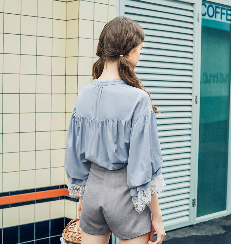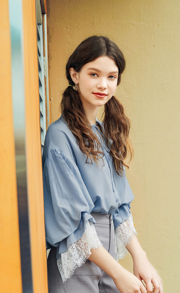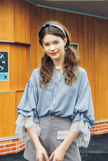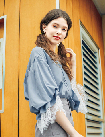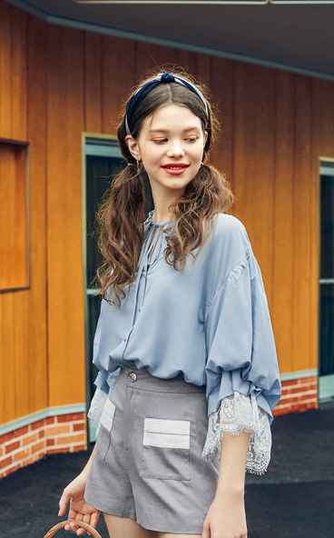 ゆったりとしたデザインなので体型カバーをしながら、袖元のレースやボウタイで女性らしさをプラス。