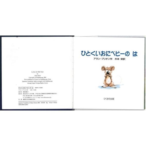 【商品基本情報】 商品名称:ひとくいおにベビーのは 著者/出版社:アラン・ブリオン/アラン・ブリオン 初版発行日:2002/05/01 サイズ:A5変判 ページ数:26 ISBN/JAN:4893172840/4528189377615