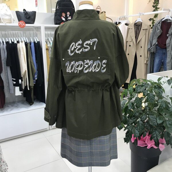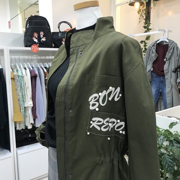 비즈 장식 야상 점퍼입니다진주 비즈 포인트로 여성스러움과 레터링 프린트로 캐주얼하게도 연출되는 야상 점퍼입니다허리 라인을 조절하여 슬림하게 연출 가능하며 소매 사이즈도 조절된답니다사이즈 55 기준가슴둘레 82cm엉덩이둘레 90cm신장 160cm총장 75cm