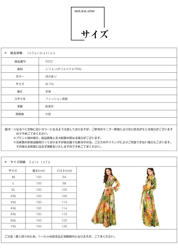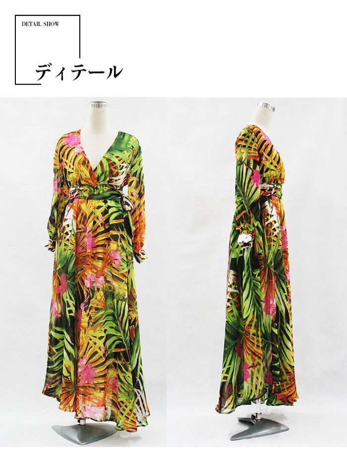 マキシワンピース 夏 大きいサイズ レディース ロング丈 長袖 ワンピース シフォン 花柄 チュニック ワンピース ゆったり 欧米セレブマキシワンピース 夏 レディース 大きいサイズ ドレス ロング マキシワンピース 夏 大きいサイズ レディース ロング丈リゾート気分満喫のインパクトある植物柄マキシワンピースです。ボディラインを綺麗にカバーしてくれる程よい加減がポイント。ビーチサイドでの散歩や、クルージング、とにかくリゾート地にはぴったり☆ふわっと広がる裾が脚を細く見せてくれるのも嬉しいです! 商品詳細:素材:シフォン(ポリエステル75%)カラー:図の通りサイズ:M-7XL袖丈:長袖スタイル:ファッション通勤季節:春夏秋原産地:中国マキシワンピース 夏 大きいサイズ レディース ロング丈 長袖 ワンピース シフォン 花柄 チュニック ワンピース ゆったり 欧米セレブマキシワンピース 夏 レディース 大きいサイズ ドレス ロング マキシワンピース 夏 大きいサイズ レディース ロング丈