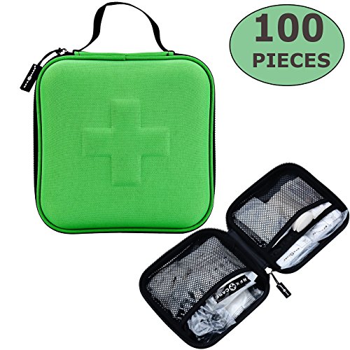 High quality first aid products:Packed with 100 medical-grade essentials,including scissors,tweezers,vinyl gloves,dressings and bandages,Alcohol prep pads and antiseptic towelettes,Adhesive Tape Roll,cleansing swab and wipes,safety pins and Scissors,etc.