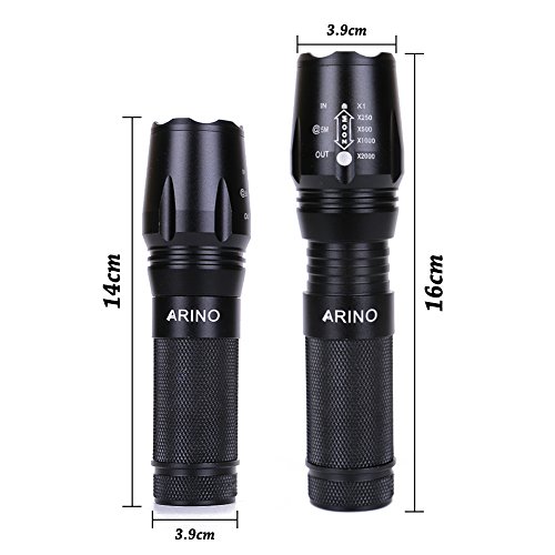ARINO ADJUSTABLE FOCUS 10W CREE LED FLASHLIGHT SUPER BRIGHT, ILLUMINATES 500 METERS, ZOOMABLE RECHARGABLE LED HANDHELD FLASHLIGHTS FOR OUTDOORS, EMT, LEO