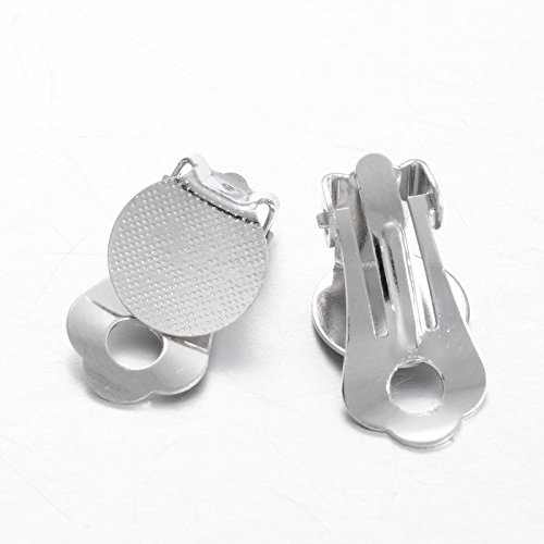 [Product Information]- Flat Round Tray Brass Clip-on Earring Components, Platinum