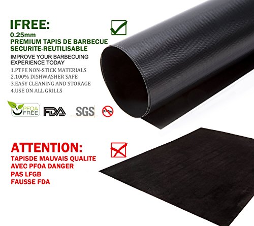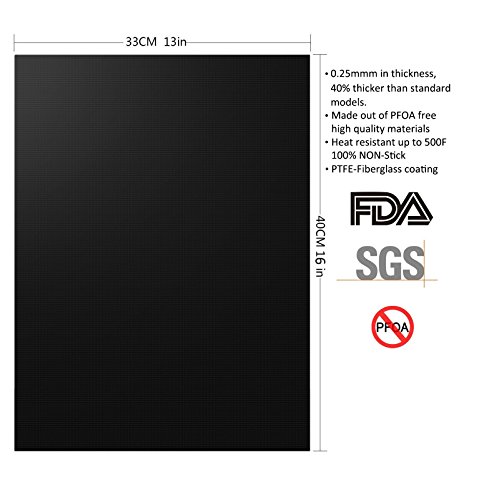 - ★The Perfect Grill Mate–Our BBQ grill mats are made from 100% PFOA-Free materials and premium PTFE-Fiberglass coating, no PFOA, silicone or other dangerous chemicals! Certified as safe by the FDA approved and guaranteed by a lifetime warranty.