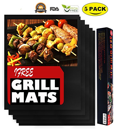 Grill Mat BBQ Accessories -Set of 5 Premium Non Stick BBQ Grill Mats - FDA-Approved, PFOA Free, Reusable and Easy to Clean - Extended Warranty (16 x 13 Inch)