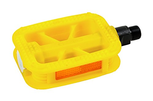 We put the “fun” in “functional.” We put the “fun” in “fundamentally rad.” We put the “fun” in “funky cold medina.” Alright, maybe we don’t put the “fun” in that last one. Regardless, it’s time to get off your booty, grab a pair of Retrospec’s Fun Resin Pedals, and hop on that bike of yours. These pedals are available in an variety of colors to keep the fun going. The resin composition and interior triangle formation mean these pedals are long lasting. Both top and bottom surfaces have grooves and ridges to keep your feet from slipping off. We’ve also included recessed reflectors to keep you safe while you ride. These commuter pedals pack a punch and are practical and spunky as all get-out. (Please note these pedals measure 9/16” and do not fit one piece steel cranks. Most kid bikes use ½” pedals.)Feature
