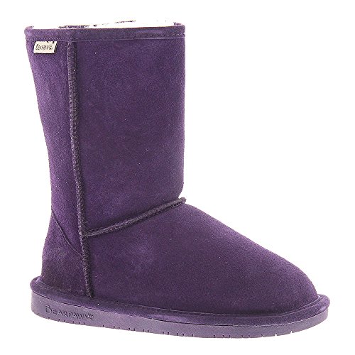 This short-height women's boot by Bearpaw offers a style that's well paired with denim, a casual skirt, or country dress, with a ruggedly comfortable design ideal for kicking around town. The upper is made of soft suede for a natural look, and the boot's luxuriously cozy lining provides increased cushioning and all-over comfort. 8" tall. Cow suede upper. Sheepskin and wool blend lining. Sheepskin footbed. Boot opening measures approximately 14 inches around. Woven heel and collar logos. Classic low profile TPR rubber wedge outsole. Shaft Height: Approx. 8'' Tall. Material: Suede.