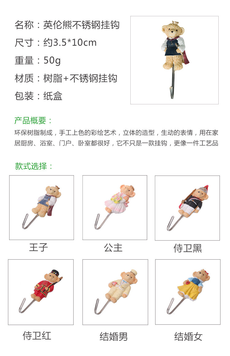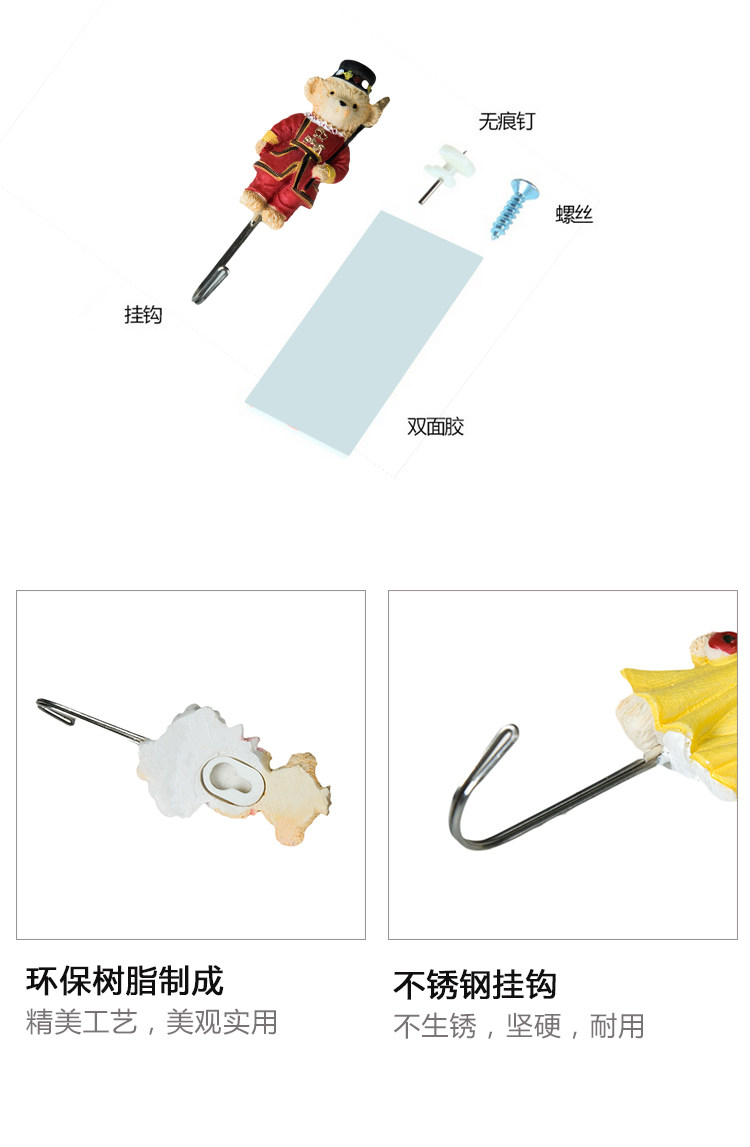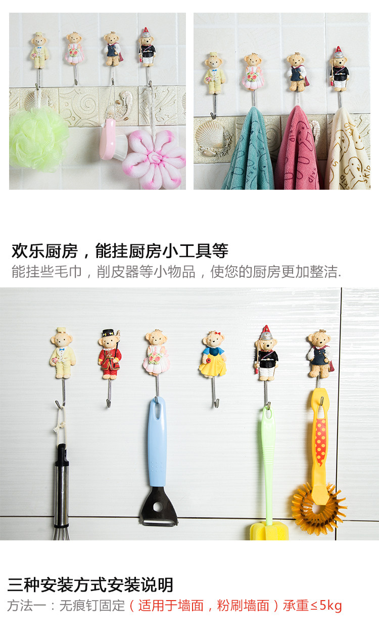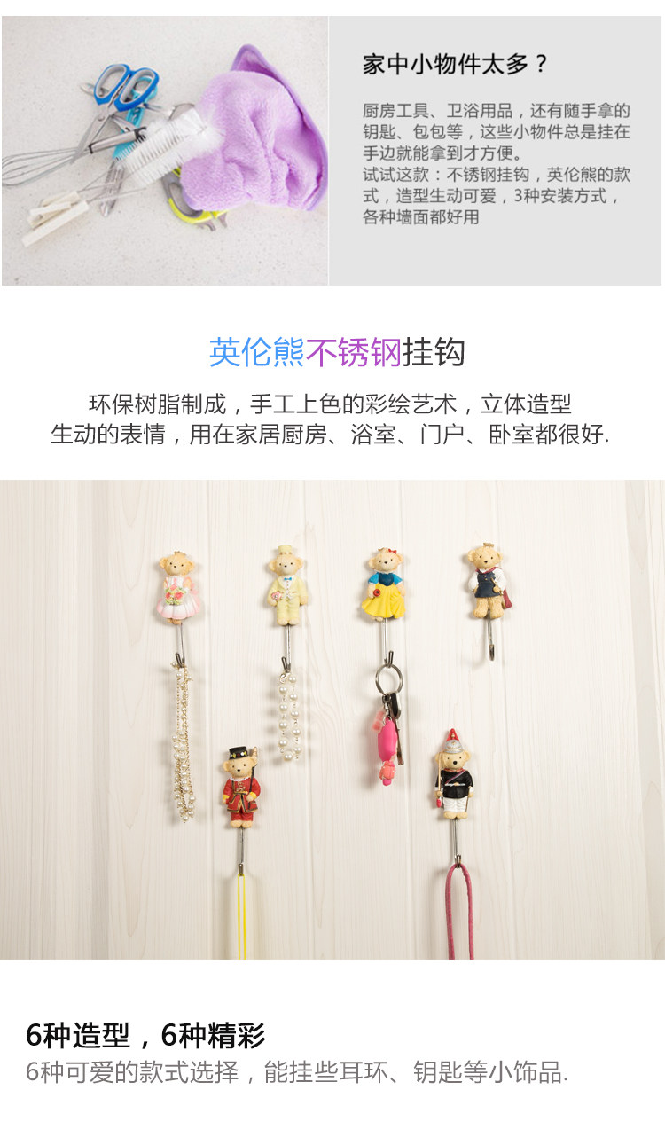 熊多功能墙壁粘胶钩 门后无痕不锈钢挂钩