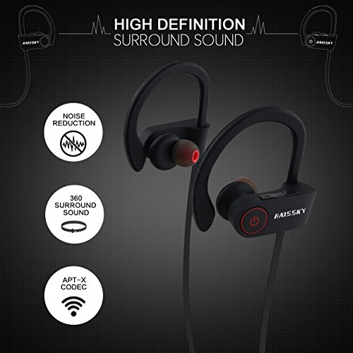 -. Feature : COMFORTABLE and SECURE FIT: With Ergonomic design and silicone ear hooks, Magicbuds Bluetooth Headphones are secure behind your ears and rest comfortably in the ear canal. Premium soft smooth silicone gel surface helps sweat proof. It is great for Gym, Running, Jogging, Hiking, Cycling, and impact Sports. / SUPERIOR SOUND and AMAZING VOLUME: With Advanced APTX tech, our in-ear design offers incredible sound quality with deep bass and crystal clear treble, no matter your taste in music. Works great for soundtracks, audio books, relaxing sounds, and even techno music. / NOISE REDUCTION: With CVC 6.0 technology, the Haissky Magicbuds Bluetooth Earbuds reduce background noise, so you can focus on your favorite music, no matter where you are. / BLUETOOTH V4.1 and UNIVERSAL CONNECTIVITY: We give you the power of Bluetooth V4.1 technology for seamless syncing to your favorite wireless devices, including iPhone, iPad, Android cell Phones, Windows Phones, and more up to 10 meters 33 feet. / HOURS OF LISTENING TIME and VOICE PROMPT: Magicbuds Bluetooth Headset can deliver up to 6 hours of play time on a full charge. Voice prompt allows notification of incoming calls and phone numbers, so never miss a phone call.