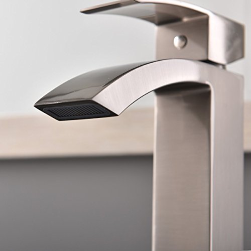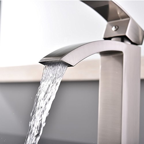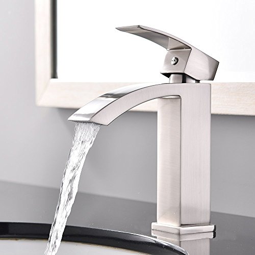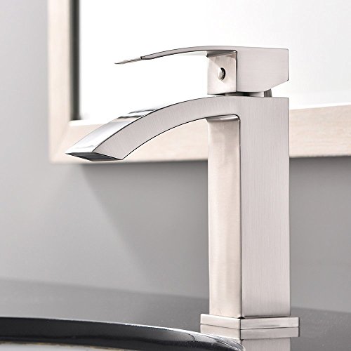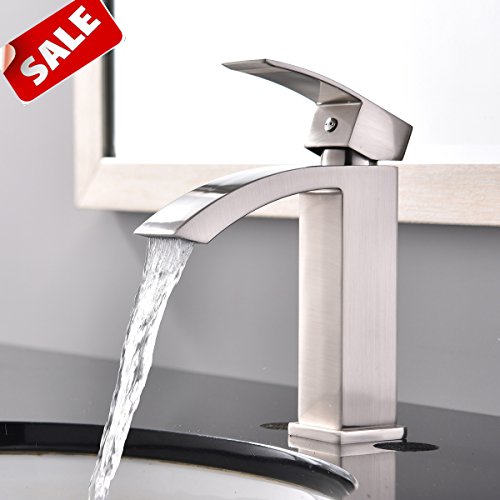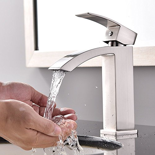Shaco Commercial Single Handle Single Hole Stainless Steel Waterfall Lavatory Bathroom Sink Faucet, Brushed Nickel With Extra Large Rectangular Spout