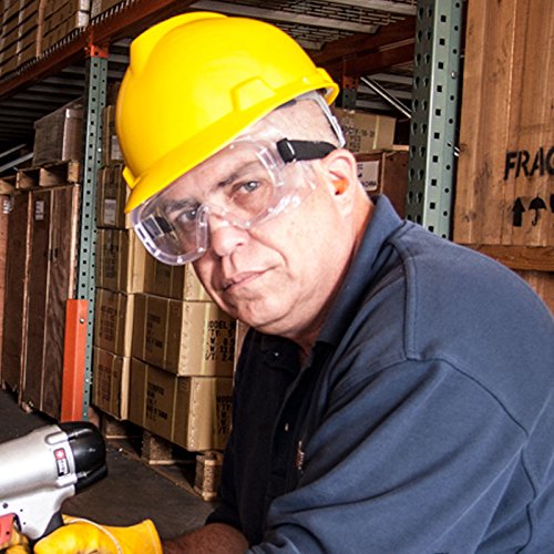 -. Feature : Meets ANSI Z87+ Standards (a more stringent version than the Z87 Standard) / Poly-carbonate hardened high impact quality lenses / Scratch resistant coating, splash resistant and heavy duty construction / Ergonomic soft PVC frame and Earmuff compatible / Lightweight, Adjustable for comfort and Ventilated