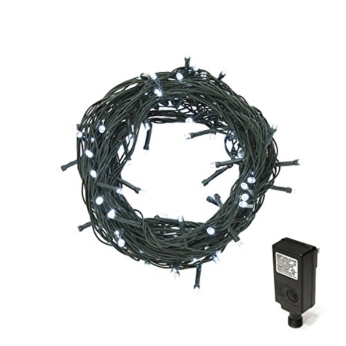VERSATILE ✓ - 1 strand of 100 Cool White LEDs, powered by a UL Plug-in adapter with 8-light Modes. Water resistant and bendable this plugin operated Christmas string light is the perfect addition to any indoor or outdoor space.
