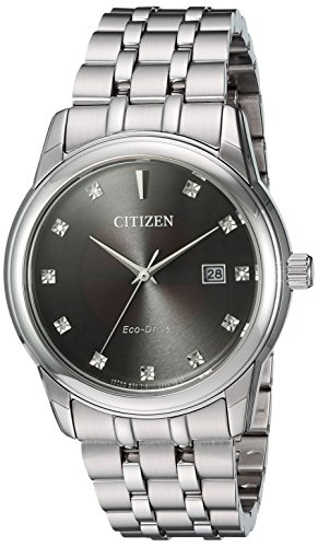 MENS BRACELET: Modern appeal and sleek design make this men's Eco-Drive timepiece the finishing touch to any watch collection. Featured with stainless steel case and bracelet, black dial with crystal markers, sapphire crystal and date diplay.