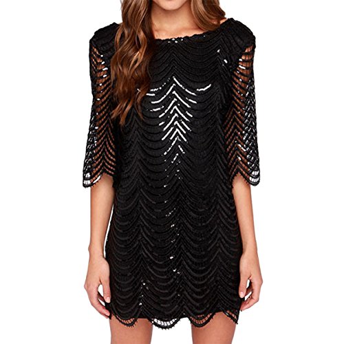 E.JAN1ST Women's Metallic Dress Boatneck 3/4 Sleeve Wave Gold Shift Party Dresses