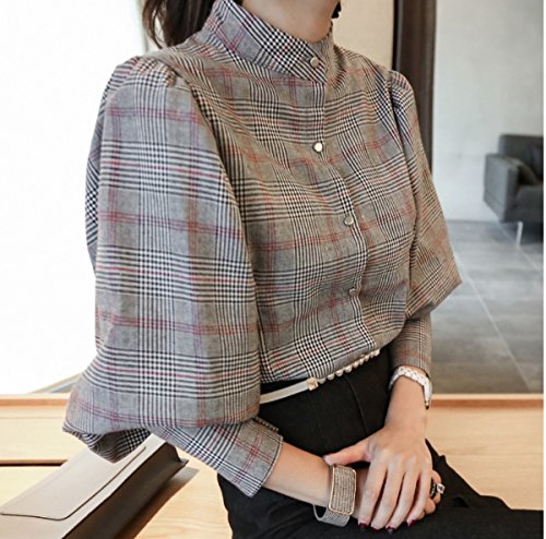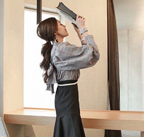 -. Feature : ※タイトな商品の為、バストが大きい方は一つ上のサイズをお勧めいたします。 / 今期大流行のグレンチェックのブラウスです♪ / デザイン袖と大きなバックリボンで華やかなトップスです♪ / ボトムスはタイトスカート、ワイドパンツ、デニムなどに相性抜群です! / 【サイズ展開】S、M、L、XL【カラー展開】グレー
